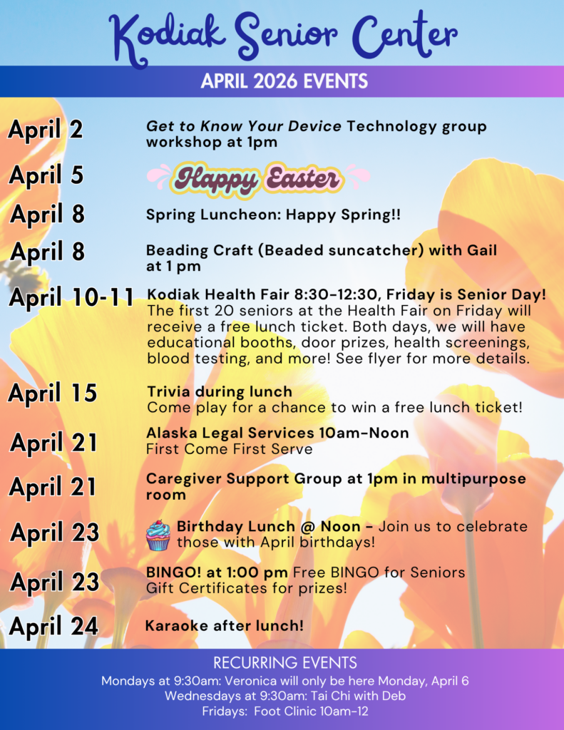 We have a new foot clinic nurse, Katrina. She offers foot clinic on Fridays from 10:00 am to noon. Call the Senior Center for available appointments ($30 per appointment). In April, she will be here every Friday except April 10. If she is not available, Kristin will be here in her place.